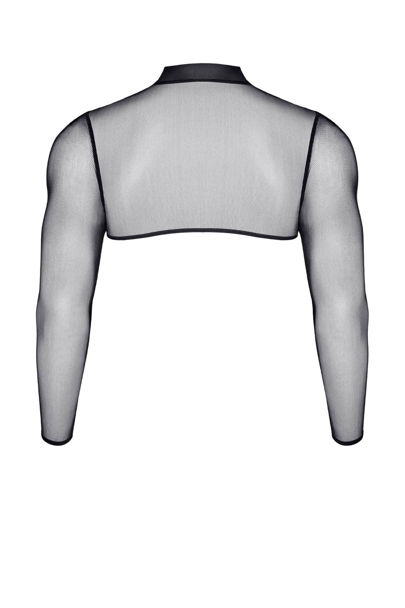 Crop top made entirely of very elastic and stretchy black mesh . It covers the neck line, shoulders and upper chest and back. Allows access to the breasts - which can and should be used for playtime. It is finished with an elastic band at the bottom hem and at the sleeves. This solution and the elastic properties of the fabric make it fit the body perfectly. Looks perfectly with the TDMona001 shorts - visible in the pictures. Model in the photo: 170 cm in height. Product size: S The article is packed in a glossy box with a picture. Care instructions: 30 degree hand wash Color : black Material : 95% polyester / 5% elastane Available Size : S, M, L, XL, XXL